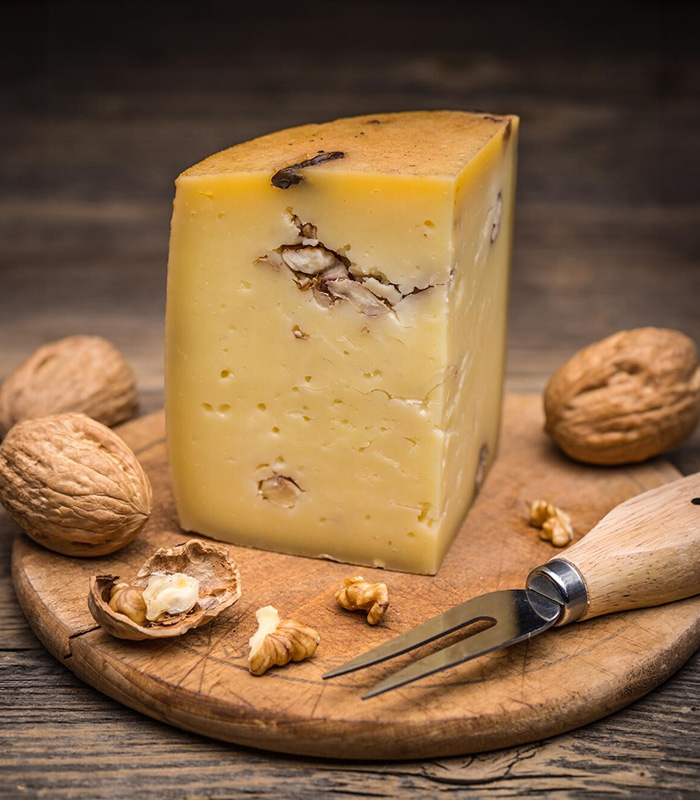 Fromage au lait cru avec des noisettes. Original et très bon à partager.